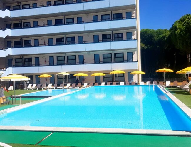 Ci troviamo sul lungomare, di fronte a noi si affaccia la verde e fresca pineta che porta alla nostra spiaggia privata. Solo 50mt a piedi e sei sotto l’ombrellone.