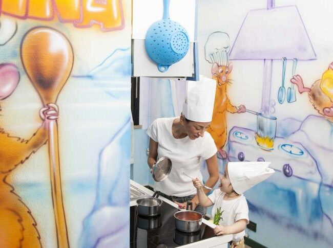 Gli ospiti in primo piano sono i bambini e le loro famiglie: animazione con mini e junior club in hotel e in spiaggia, per giocare tutti insieme in allegria, baby parking durante i pasti nell’ area giochi, gustoso buffet a misura di bimbo, mega merenda al pomeriggio per grandi e piccini, piccole dolcezze per la buonanotte, bombolone party….e molto altro ancora. Le mamme non avranno alcun pensiero: un cucinotto è aperto 24 ore su 24 per lasciare la libertà di un angolo cottura per le pappe, tutte le camere sono attrezzate con il necessario (spondine, riduttori, vaschette, lucine per la notte ecc…) e per la serenità di tutti c’è il servizio pediatrico gratuito in hotel (su richiesta)